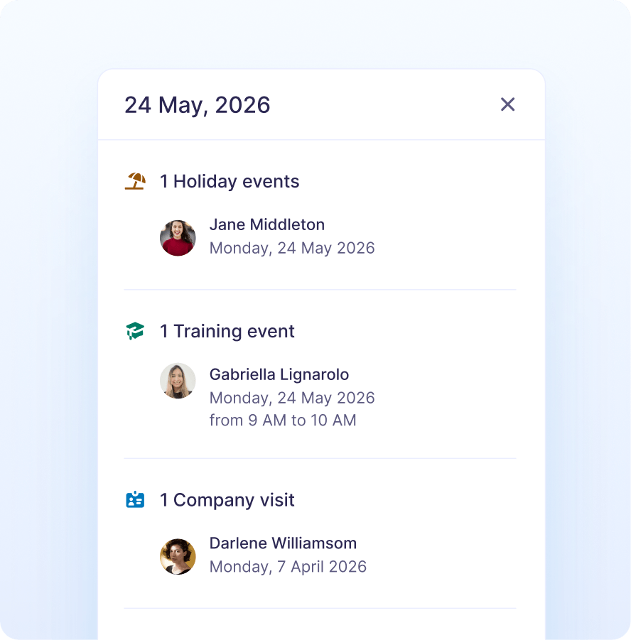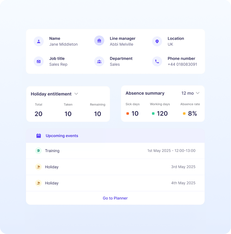 Everything you need to know about any of your people is all stored in one central, searchable HR system with no messy sheets, tabs or pages to navigate.